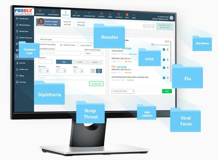 Probuz Clinic Management Software’s user interface accelerates all your workflows and processes by enabling you to navigate smoothly via the keyboard on an HTML5 screen.